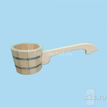 Выполнен ковш с горизонтальной ручкой из липы, а эта древесина, как известно, не выделает с годами смол и прекрасно впитывает влагу. Следовательно, названное изделие – незаменимый, практичный и очень удобный атрибут в любой сауне и бане.